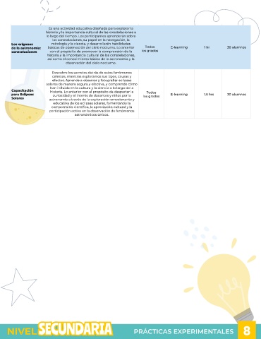 de la astronomía: básicas de observación del cielo nocturno. Lo anterior Todos E-learning 1 hr 30 alumnos